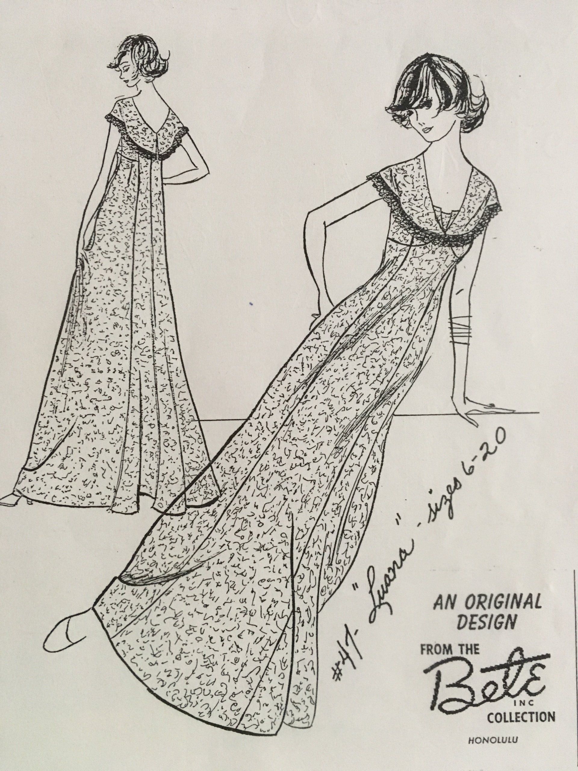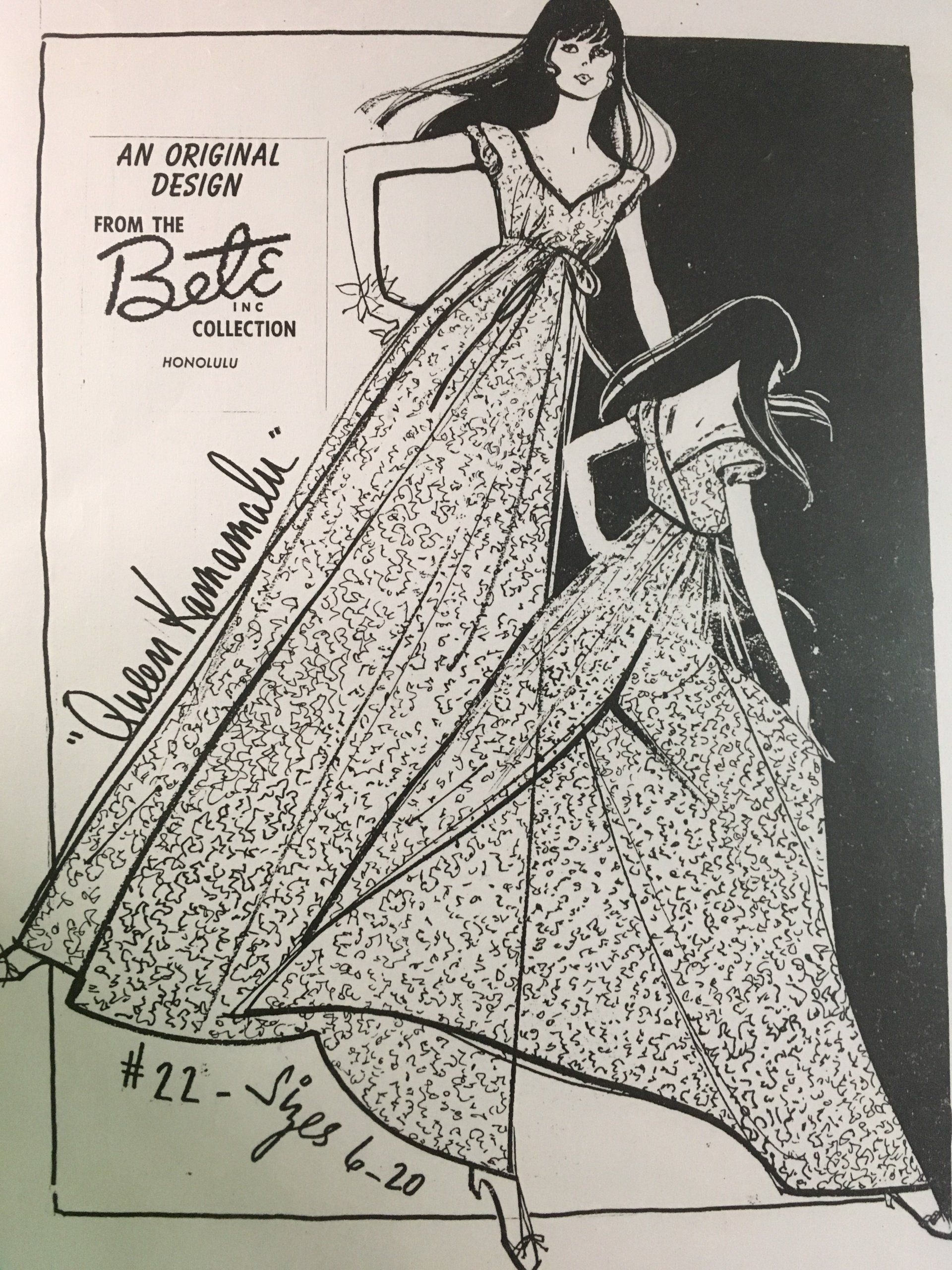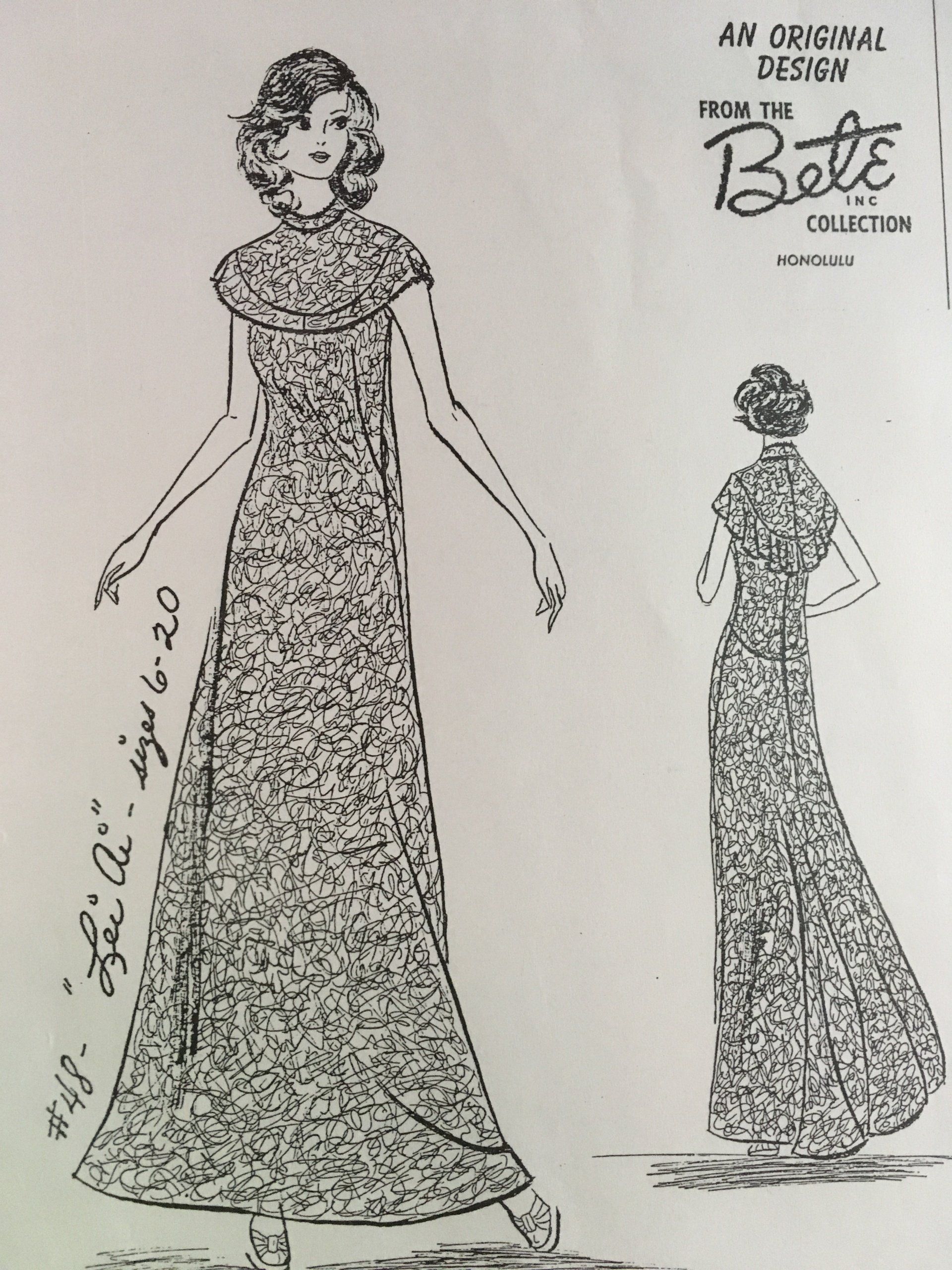 Elizabeth “Betty” Manchester, founder of Bete Mu’u, wanted her designs to reflect Hawai’i. In addition to giving each design a style number, she gifted each design a name to reflect the culture and life in Hawai’i. We share with you Bete Mu’u Designs in collaboration with two of our local designers. Come with us as we begin our journey with four of “Betty’s” gifts: